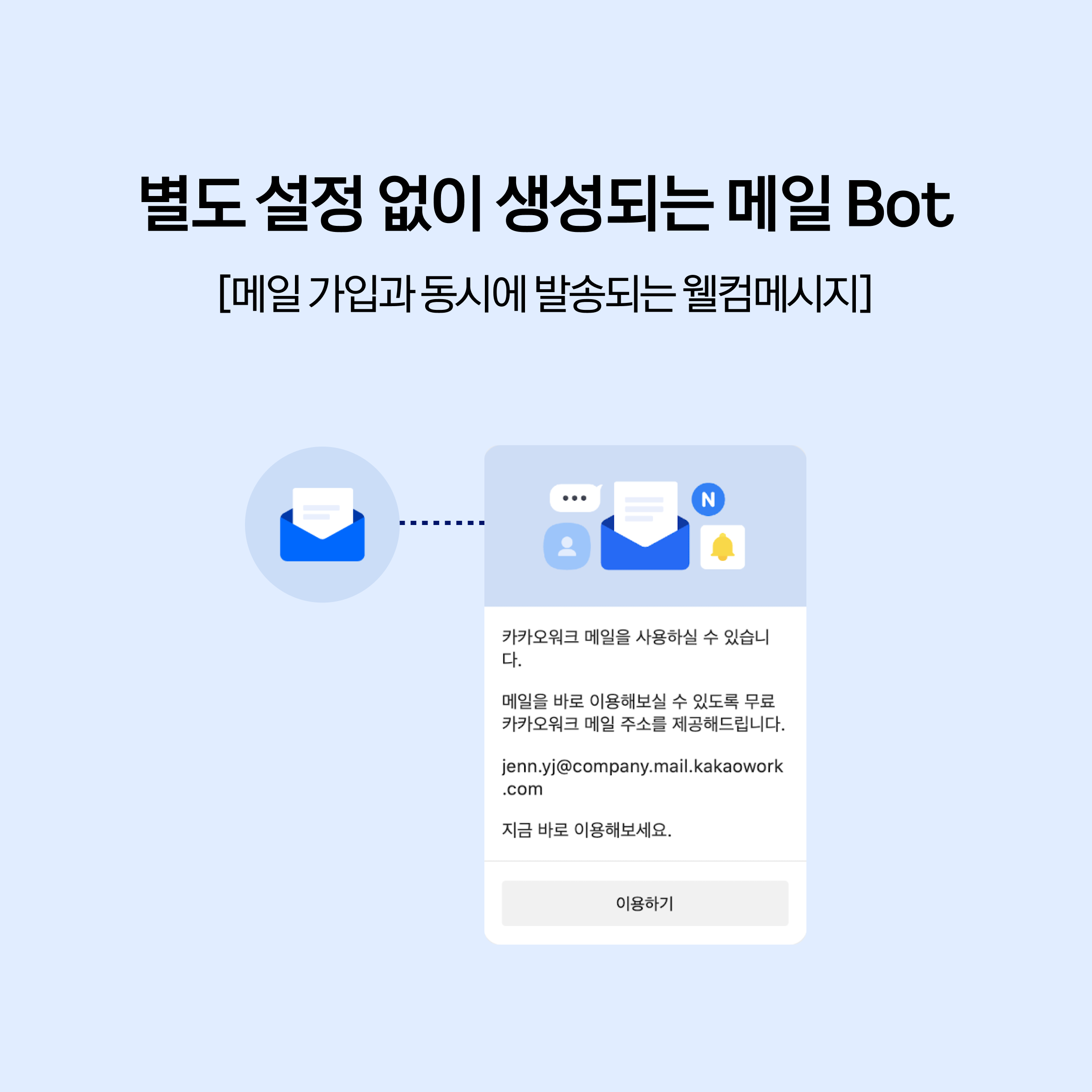 메일 Bot은 번거로운 과정 없이 자동으로 연결되어 편리한 메일 사용을 도와드려요.