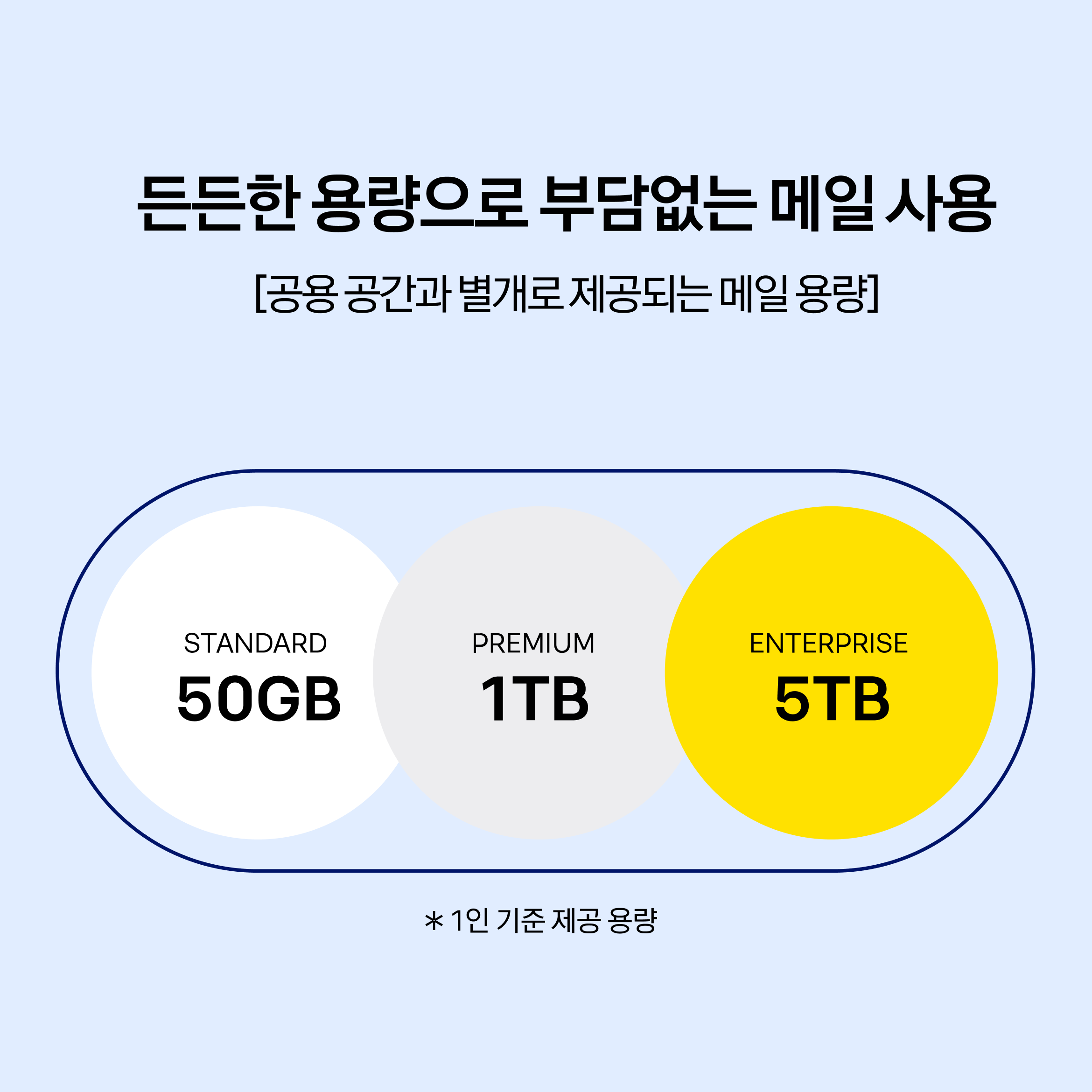 공용 저장공간과는 별개로, 플랜별로 인당 50GB부터 5TB까지 여유로운 용량을 제공합니다.