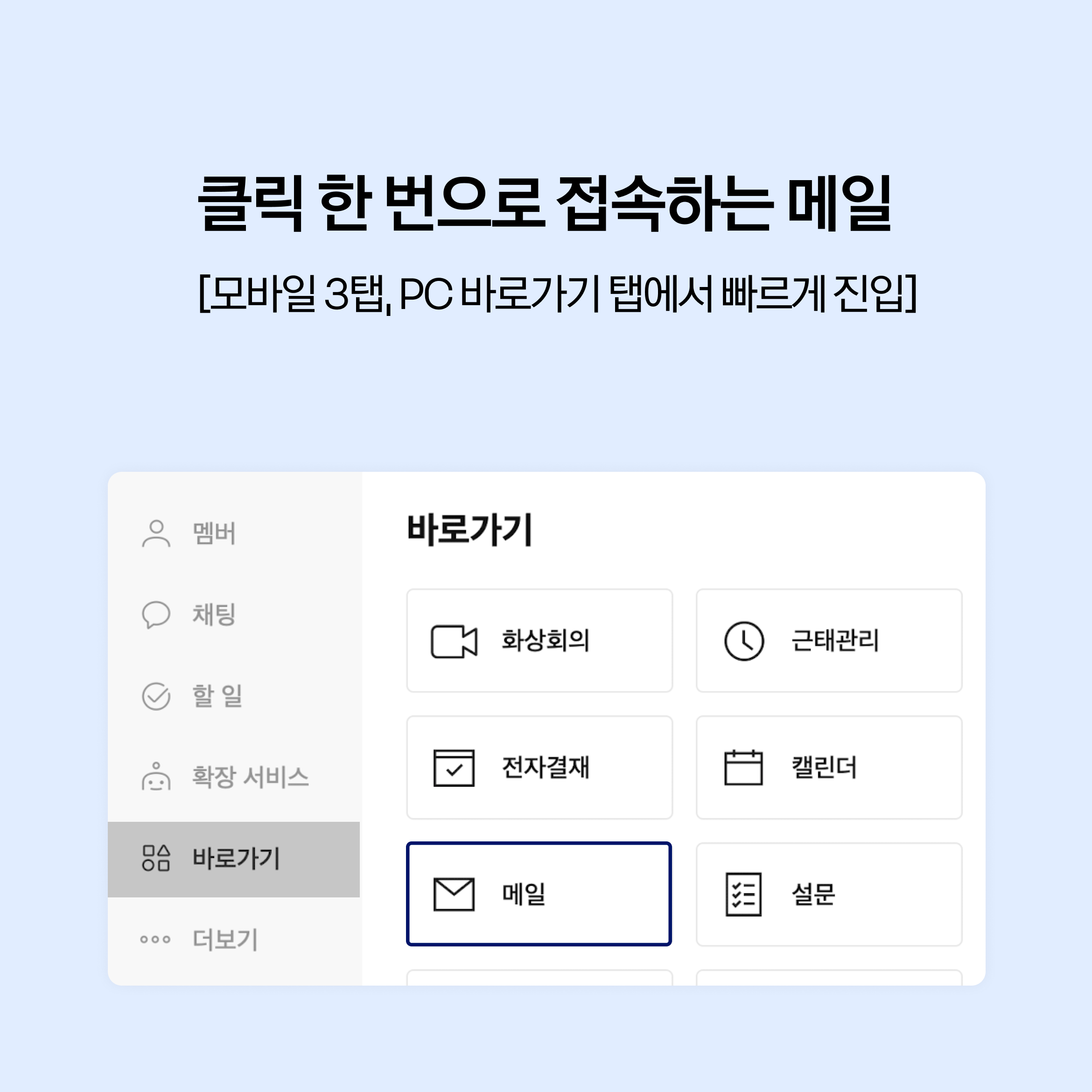 3. [카카오워크 3탭의 바로가기]에서 메일 서비스로 바로 접속해보세요.