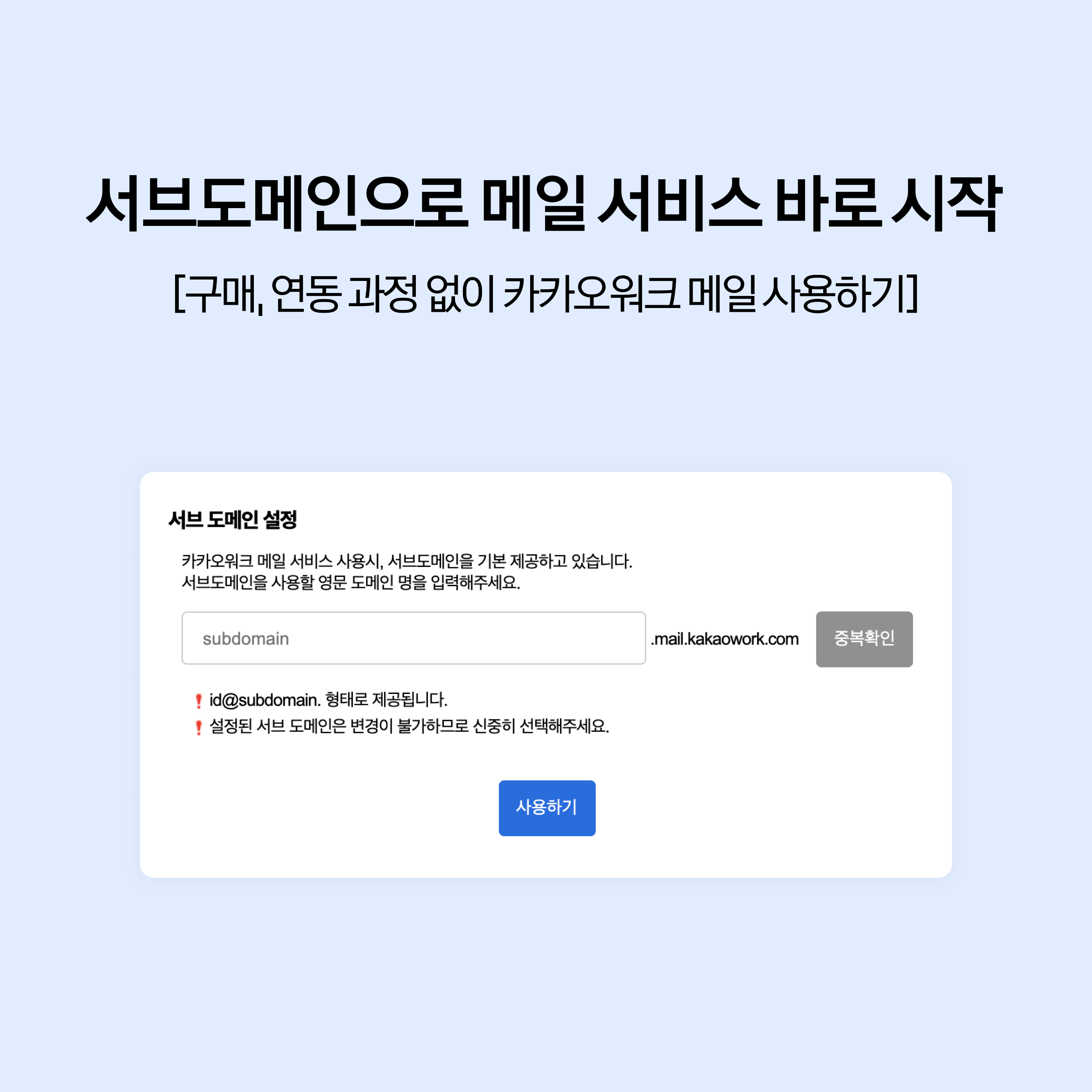 4. [무료로 제공되는 서브도메인]으로 별도의 연결 없이 카카오워크 메일을 사용해보세요.