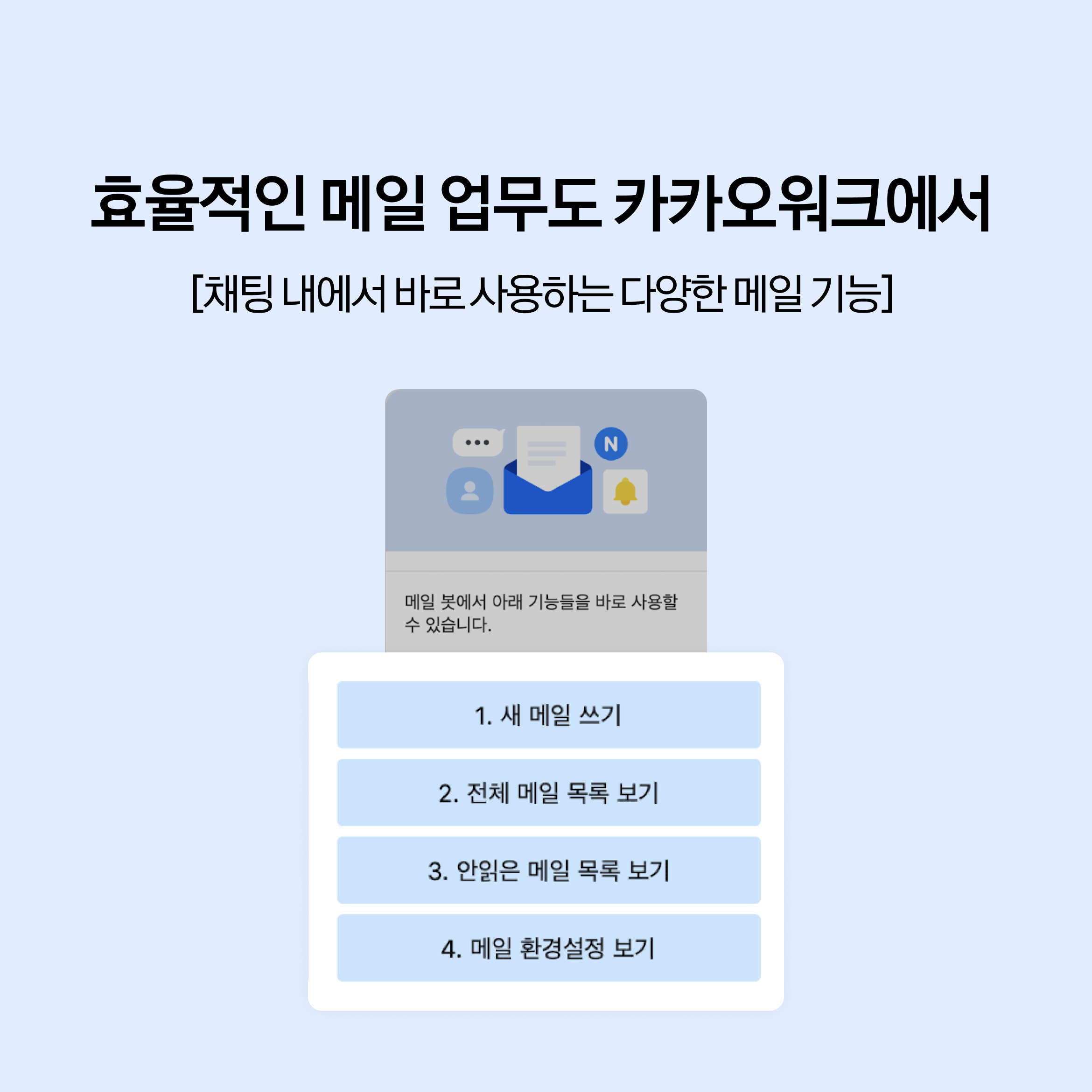 메일 Bot을 통해 채팅 내에서 다양한 메일 기능을 사용할 수 있습니다.