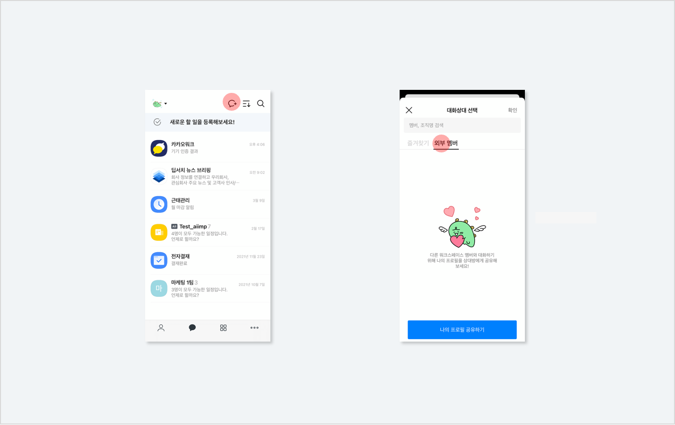 카카오워크 서비스소개 : https://www.kakaowork.com/about