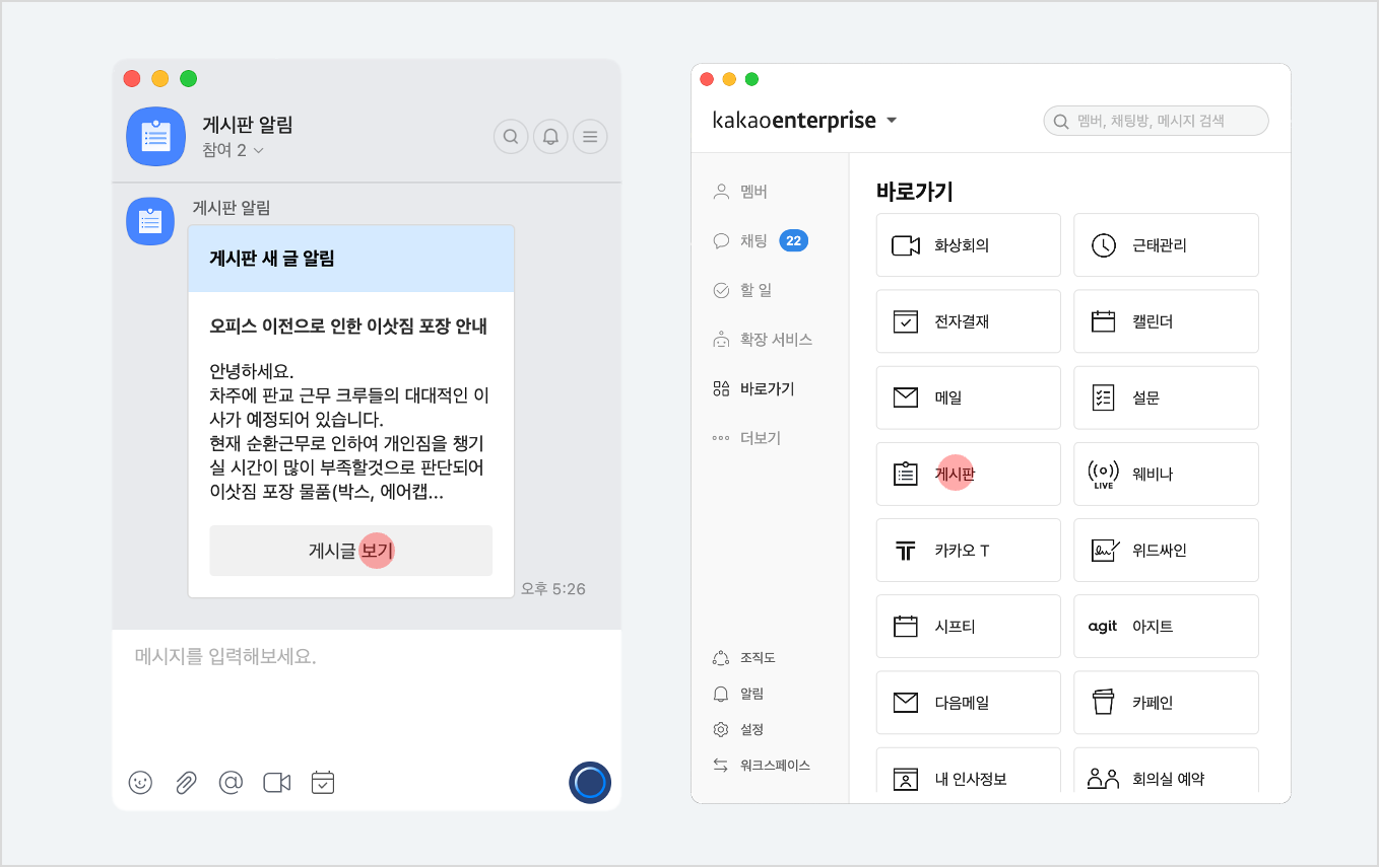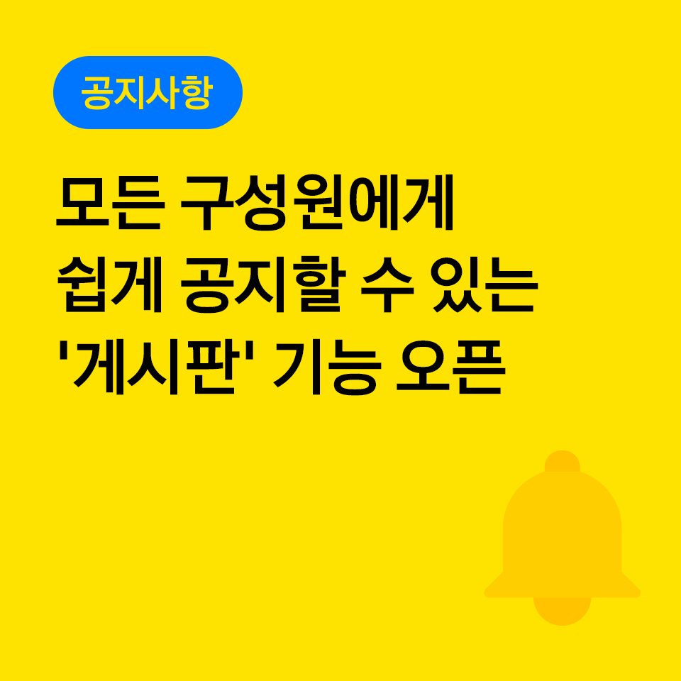 이제, 카카오워크 게시판 기능으로 사내 중요한 소식을 더욱 편하고 확실하게 전달해보세요.