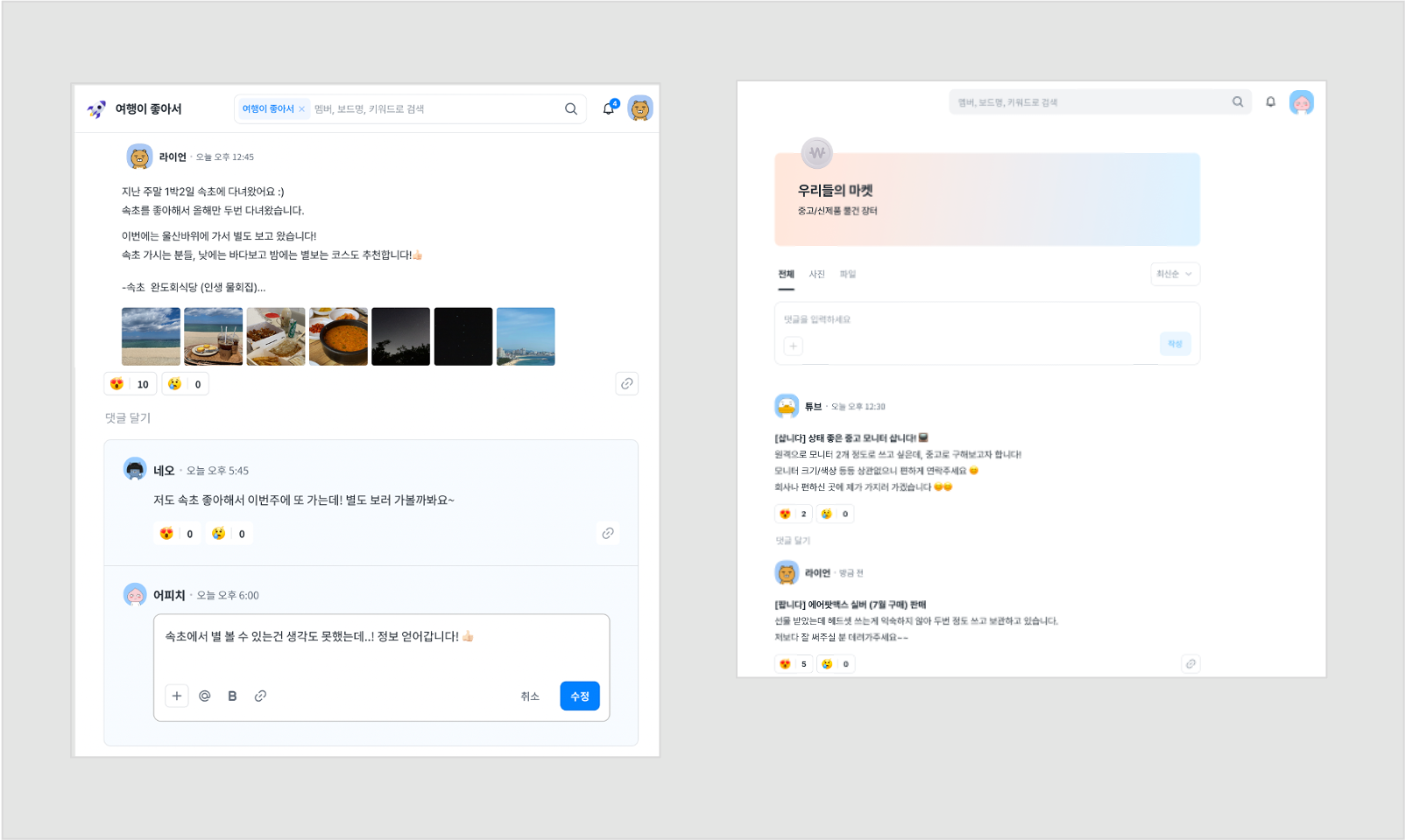 업무 정보성 게시글 외에도 회사 구성원들의 친목이나 정보 공유를 위한 게시판으로도 써보세요!