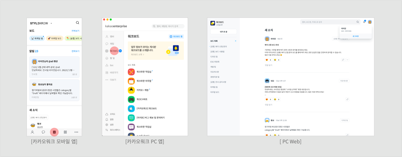 카카오의 수평적이고 투명한 커뮤니케이션 문화를 닮은 워크보드를 만나보세요! 😉