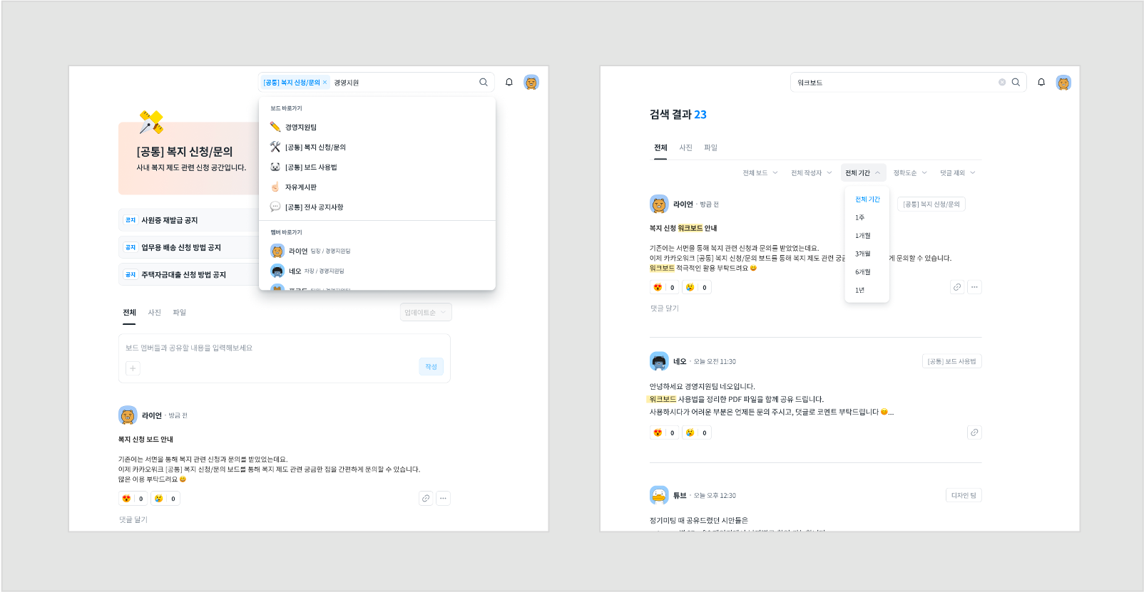 📌 워크보드의 유용한 게시글 조회/소통 & 검색 기능을 소개합니다