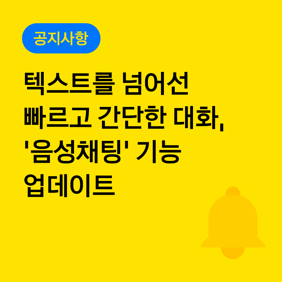 '음성채팅'은 이름처럼 채팅방 규모의 멤버들과 음성으로 실시간 대화할 수 있는 서비스입니다. 음성채팅 기능을 통해 멤버들과 단 한 번의 클릭으로 빠르게 연결되어 채팅방 안에서 간편하게 소통할 수 있습니다.