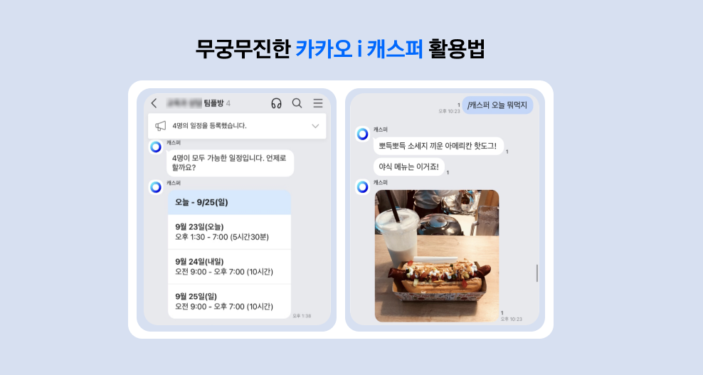 학생들에게 가장 좋은 평가를 받은 기능 중 하나는 AI 어시스턴트 카카오 i 캐스퍼입니다. 대학생이라면 누구나 팀플을 하게 되는데요.