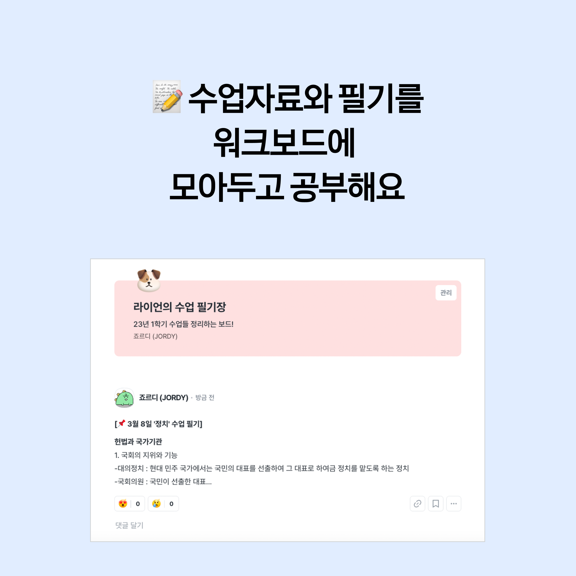 수업별 조모임 게시판을 워크보드로 활용해보세요! 🌝