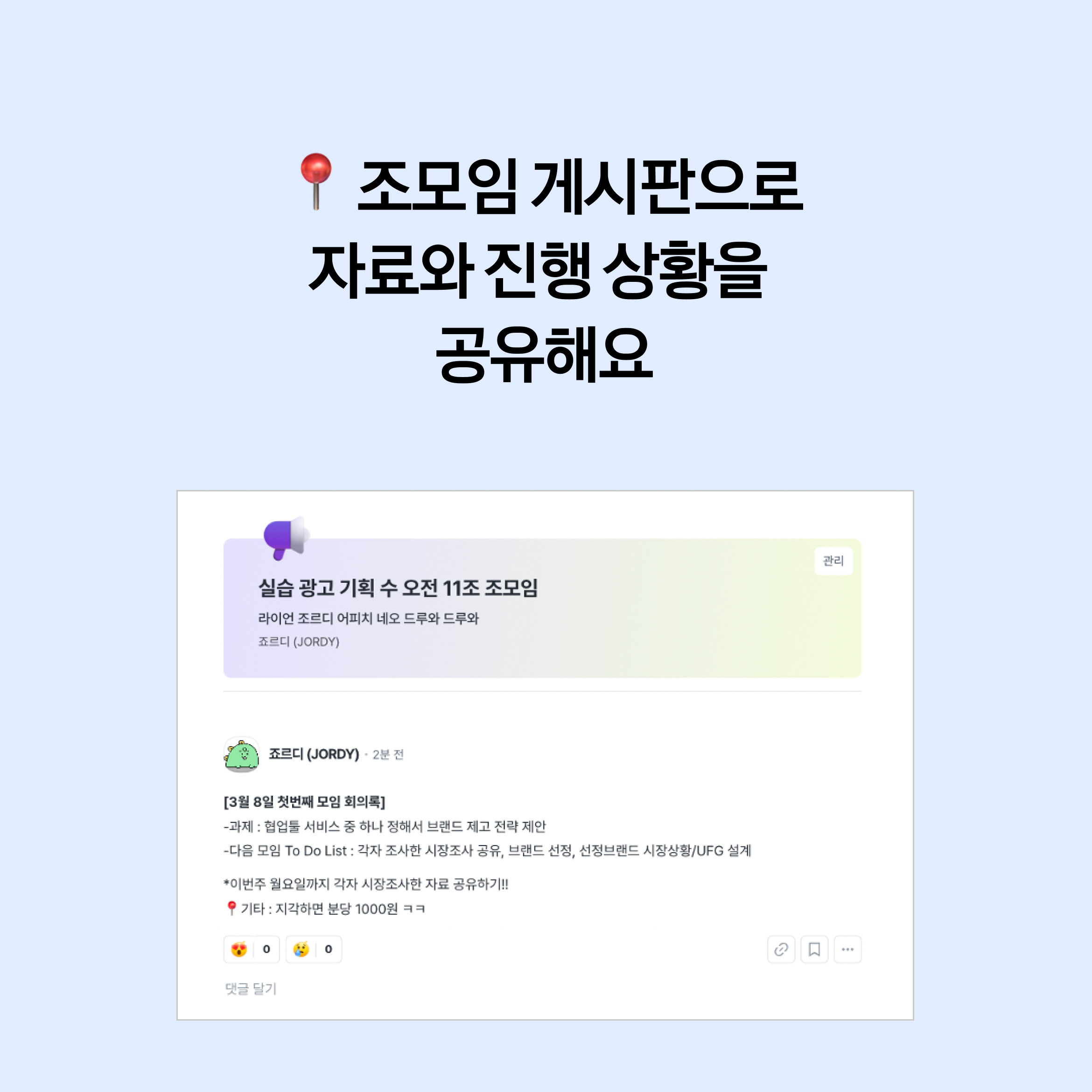 수업별 조모임 게시판을 워크보드로 활용해보세요! 🌝