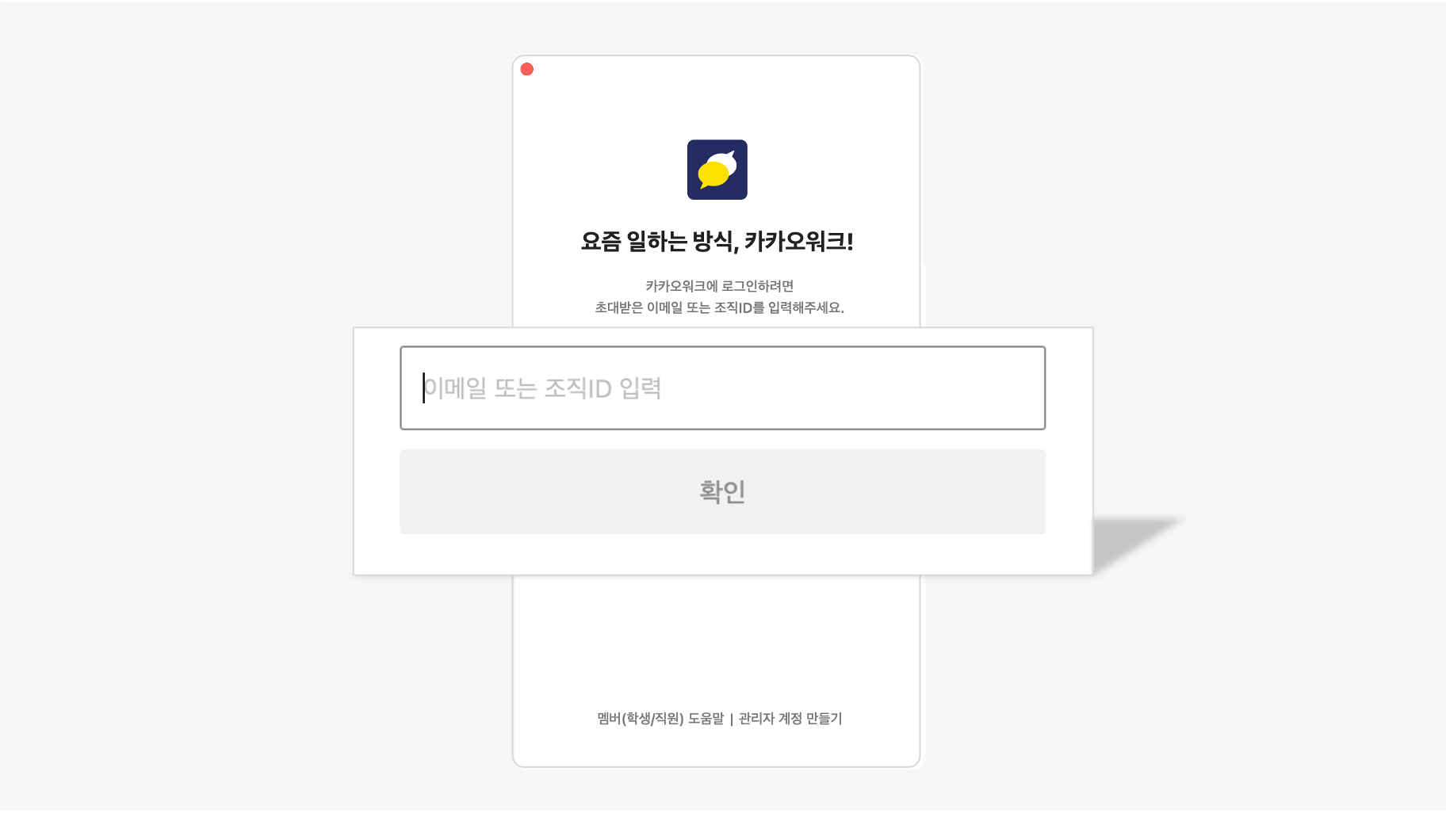 조직 ID 입력을 통해, 별도의 이메일 인증 없이 간편하게 카카오워크를 시작할 수 있어요.