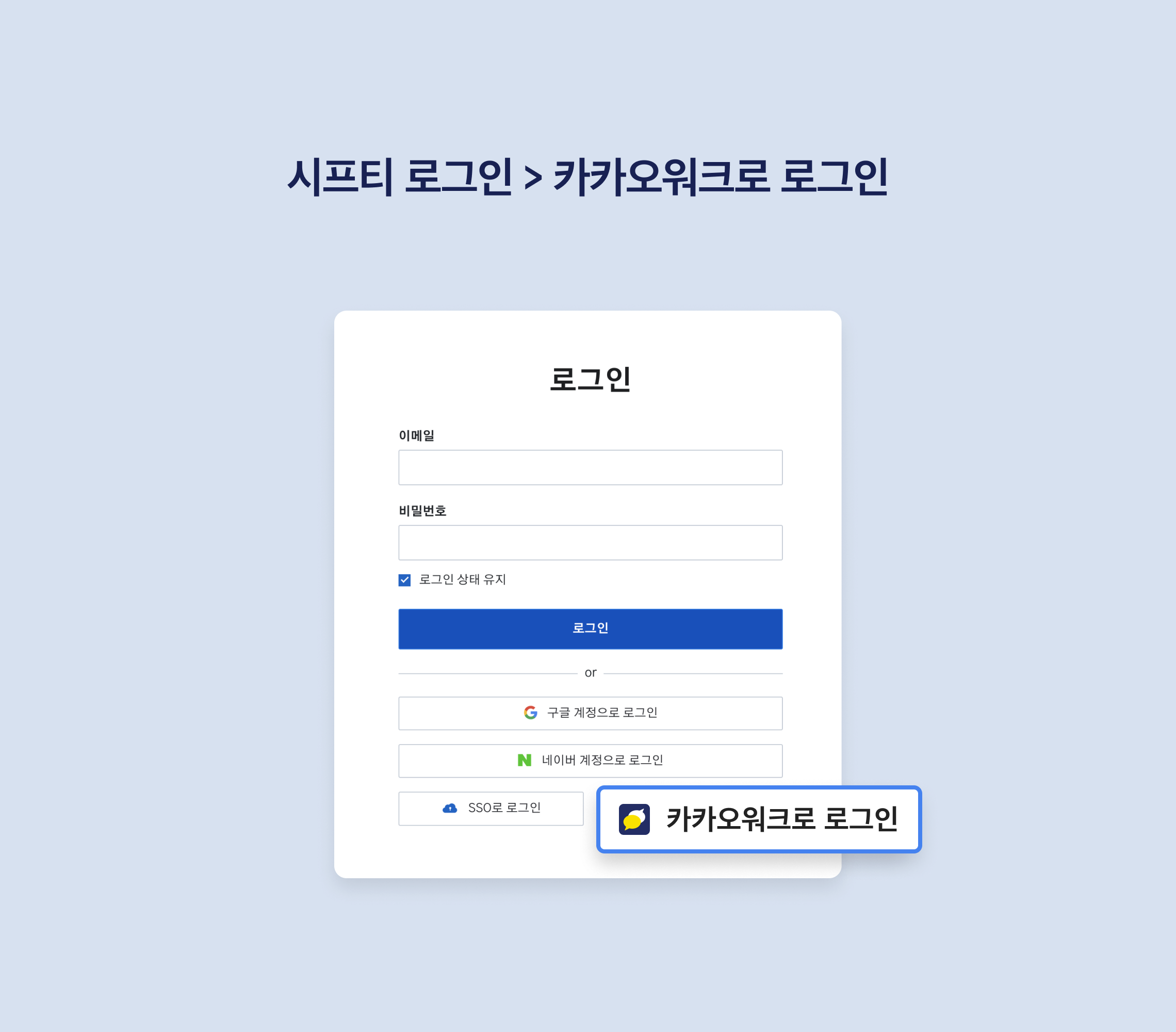 시프티 화면에서 '카카오 워크'로 로그인 해 주신다면, 시프티 연동 사용 준비 완료!