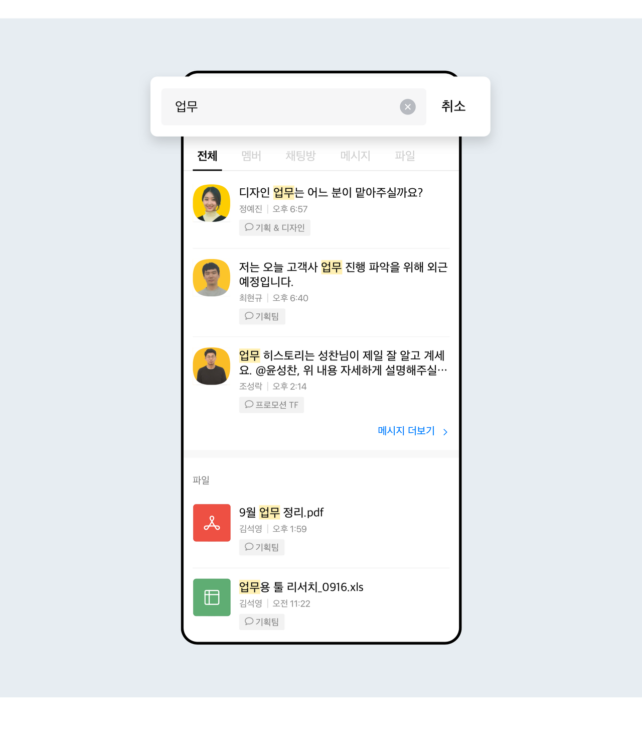 1) 업무에 특화된 편리한 메신저