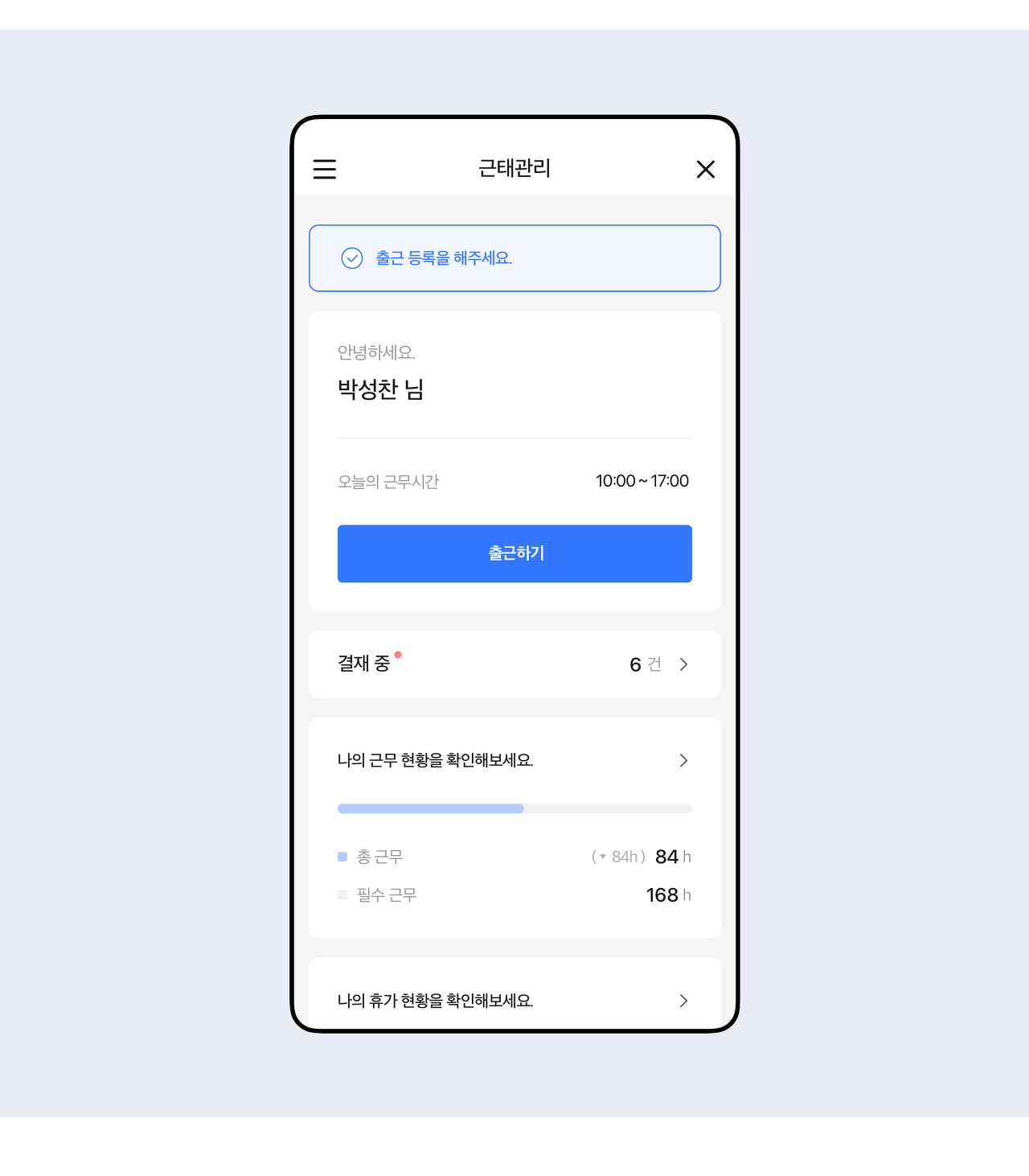 3) 기본으로 제공하는 근태관리와 전자결재 시스템