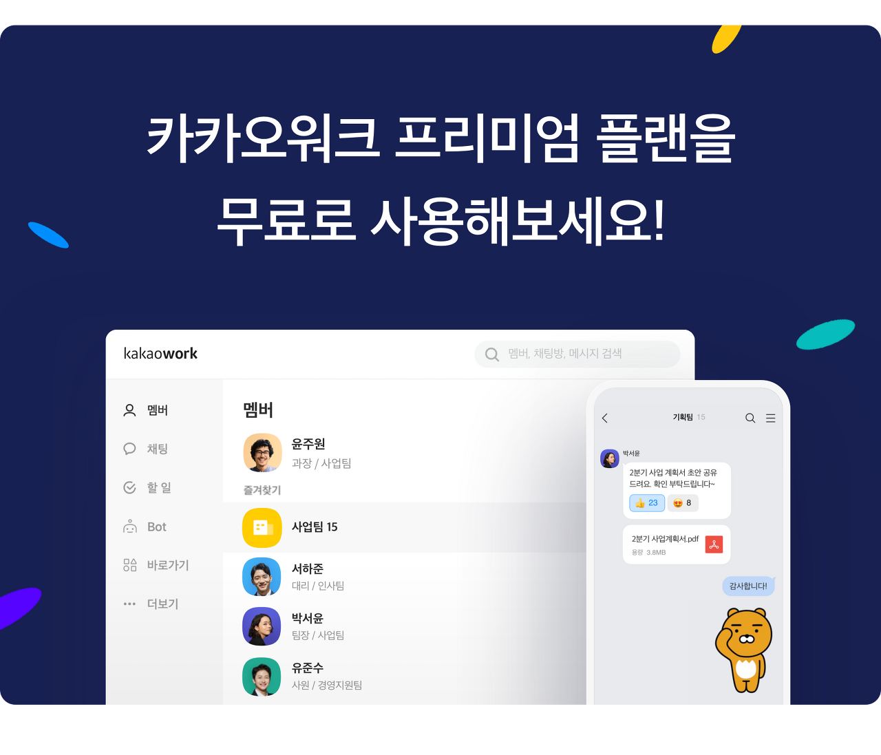 기업용 유료 버전 오픈 전까지 카카오워크 프리미엄 플랜을 무료로 사용할 수 있습니다.