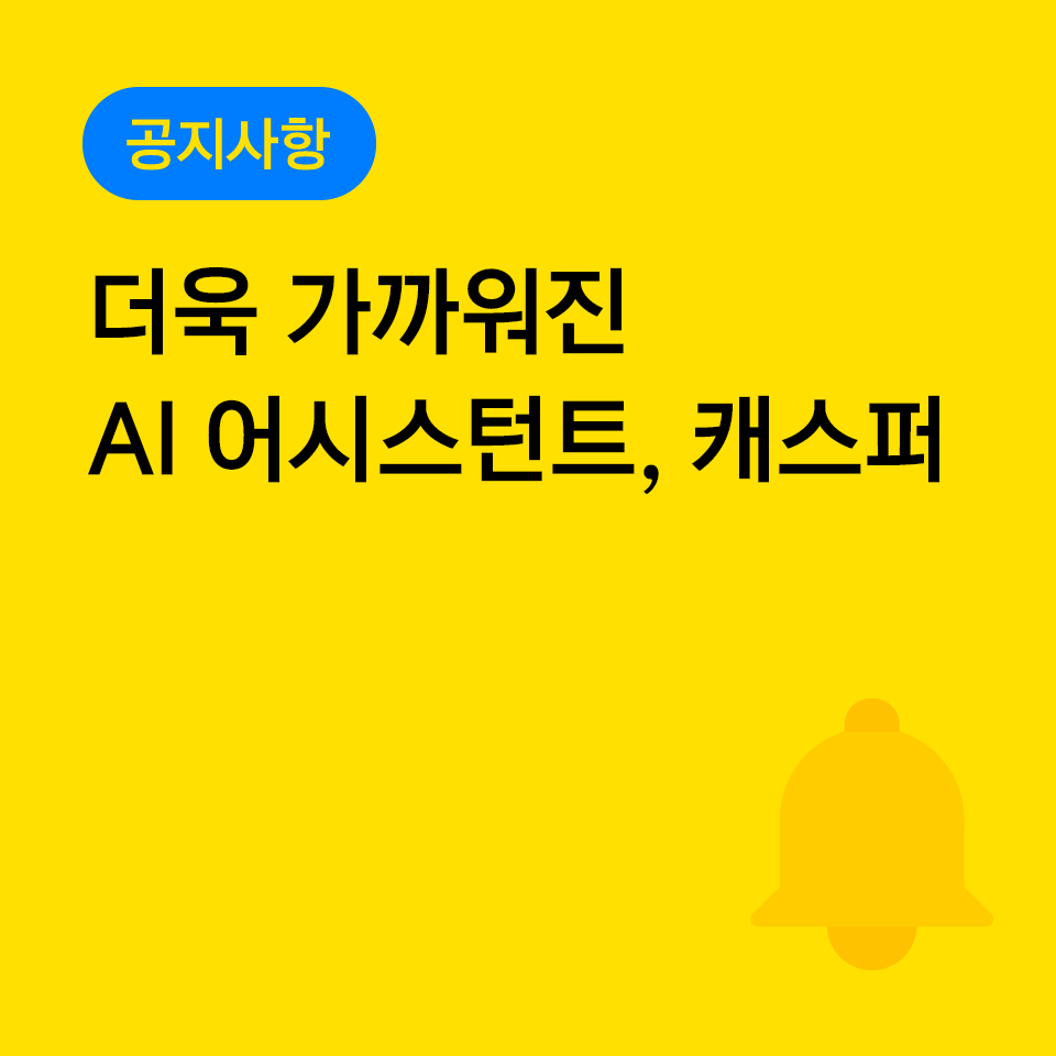 1분 1초가 아까운 업무 시간, AI 어시스턴트 ‘카카오 i 캐스퍼’를 번개⚡️같은 속도로 호출해 업무에 활용할 수 있도록 아래와 같이 개선되었습니다.
