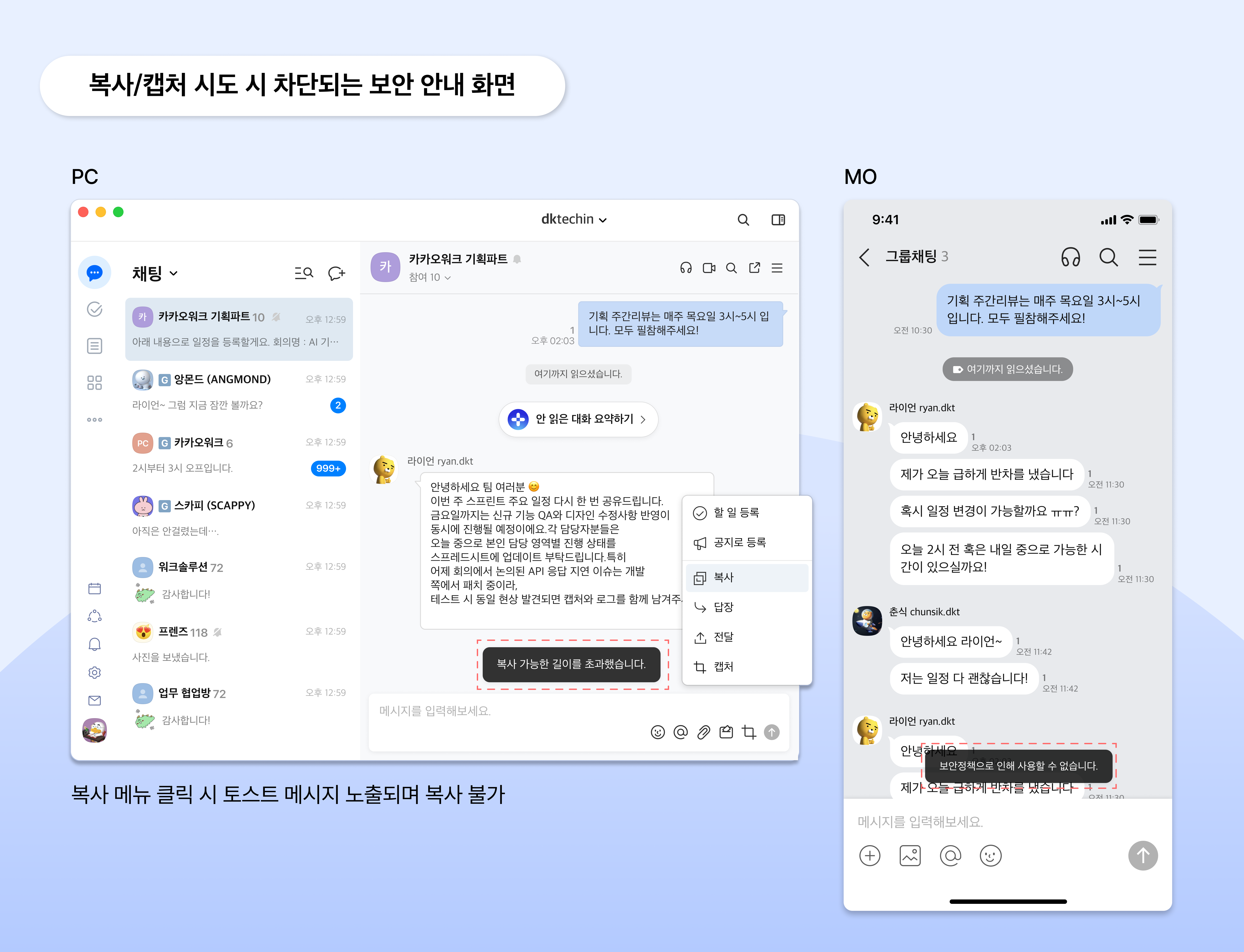 복사·캡처·스크린샷까지, 중요한 정보 유출을 더 안전하게 보호해요.