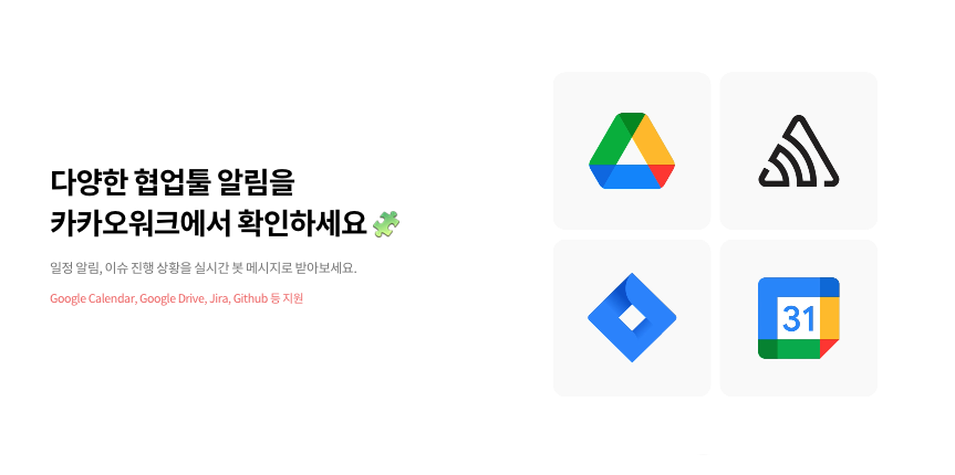 구글 캘린더를 비롯하여 구글 드라이브, 깃허브, 지라 등 다양한 협업툴이 가능하답니다.