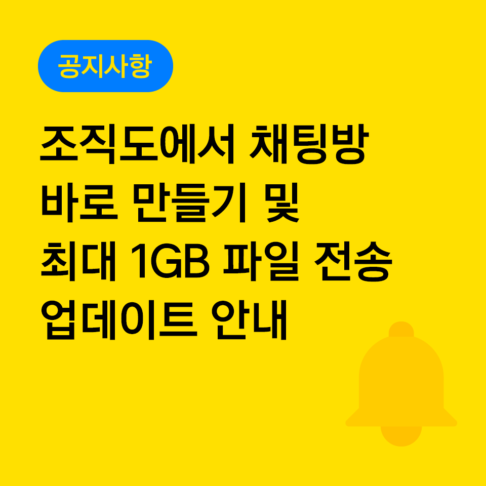 소소하지만 일하면서 불편했던 기능들을 보완하기 위해 카카오워크팀에서는 파일 전송 용량을 기존 300MB에서 1GB로 확대하고, 카카오워크 조직도에서 팀별, 파트별, 조직별 등 원하는 그룹을 선택해 채팅방을 바로 만들수 있게 업데이트 했습니다.