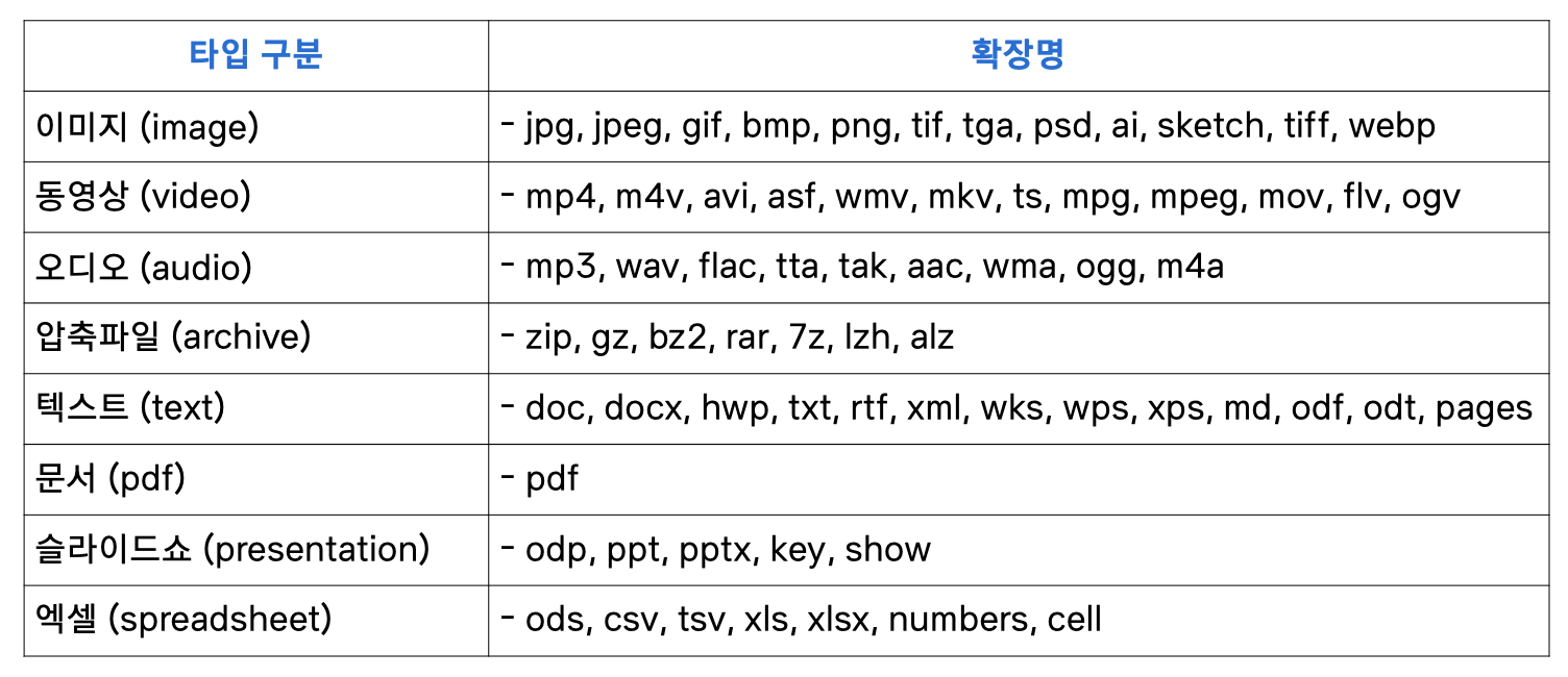 카카오워크 채팅방에서 첨부파일 가능한 확장자 파일들은 아래 이미지를 참고해주세요.